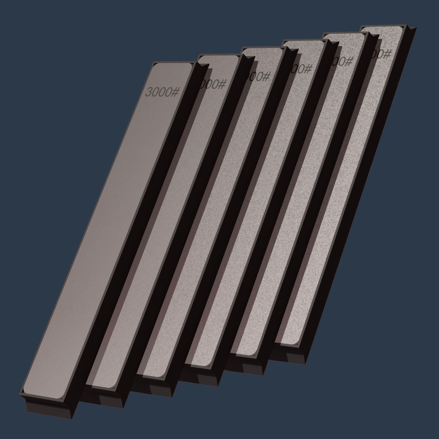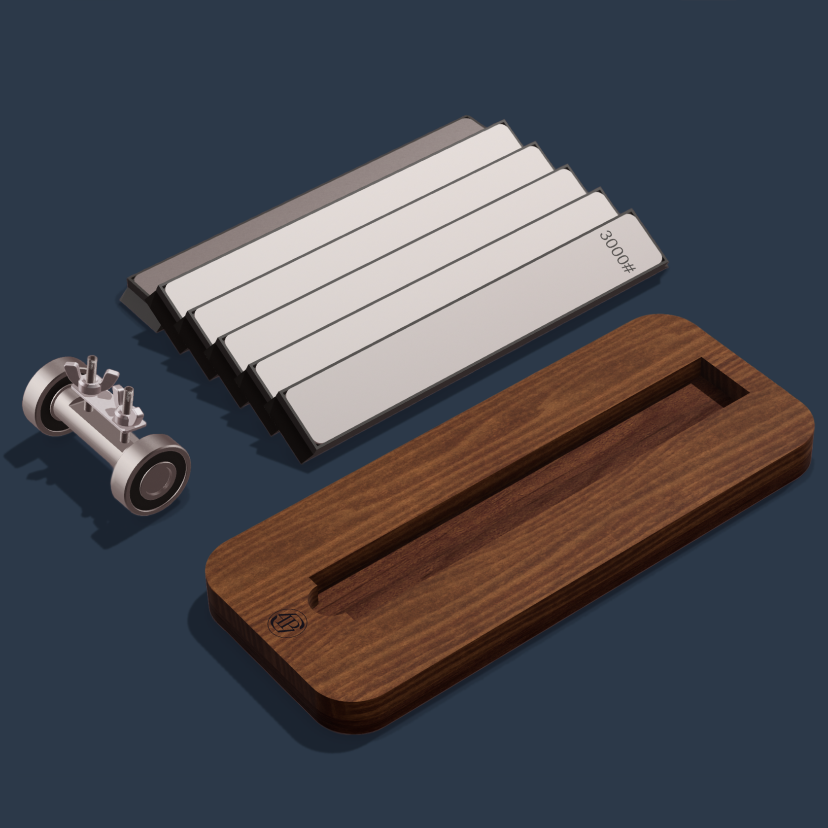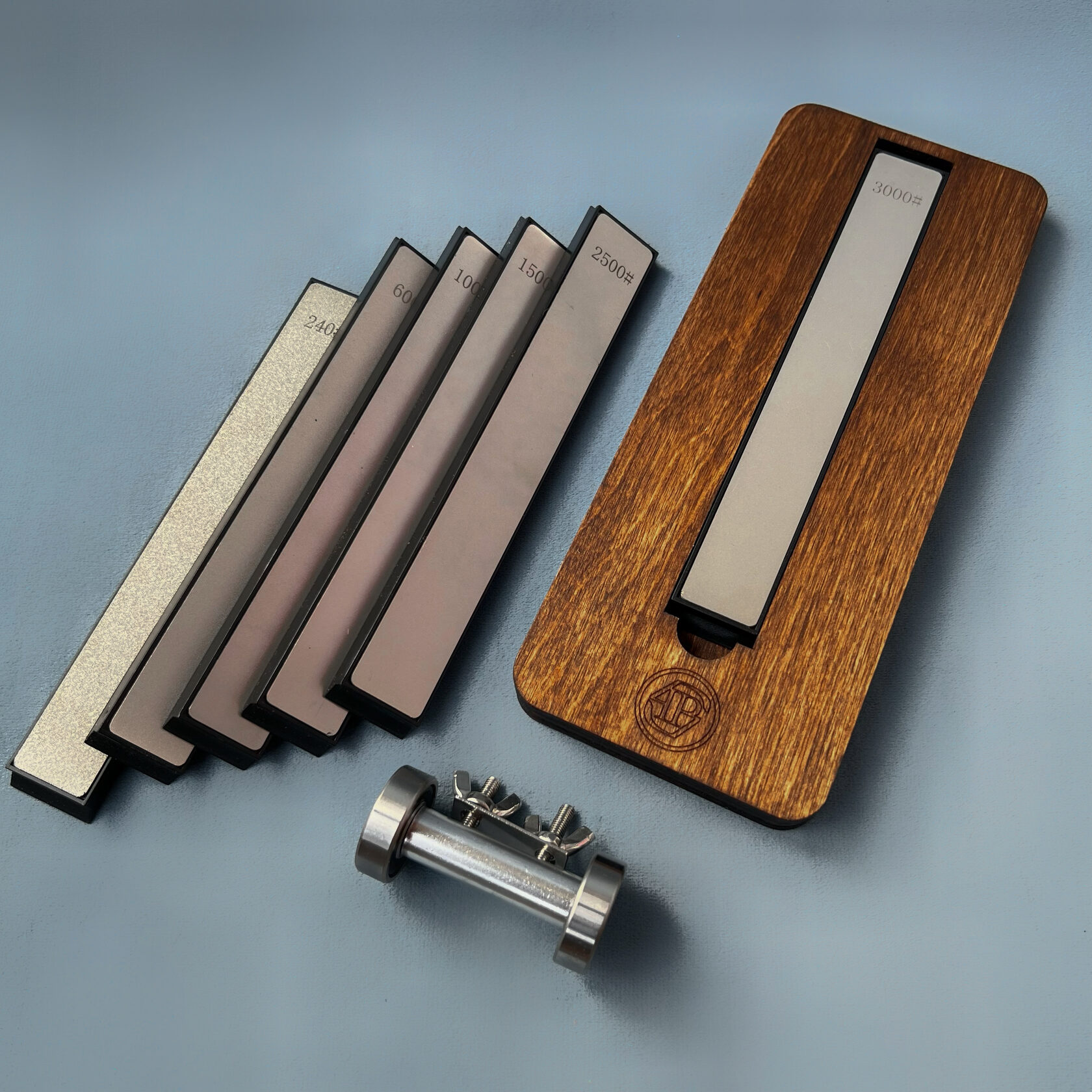 1) Набор из 6 брусков для заточки, зернистостью: 240#, 600#, 1000#, 1500#, 2500#, 3000# 2) Каретка для заточки 3) Держатель для брусков