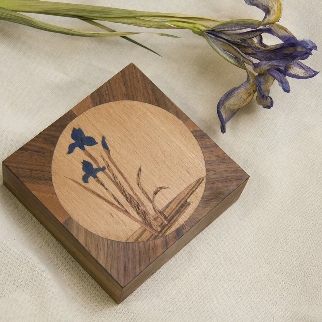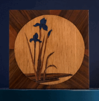 Изображение ирисов в маркетри создает ощущение живой картины в дереве, словно цветочный сад застыл в этой изысканной мозаике. Композиция с ирисами сочетает в себе удивительную мастерство художника и неповторимую красоту природы. Каждая деталь этого уникального произведения создана с любовью и тщательностью, словно затерянный артефакт, пронесенный сквозь века.